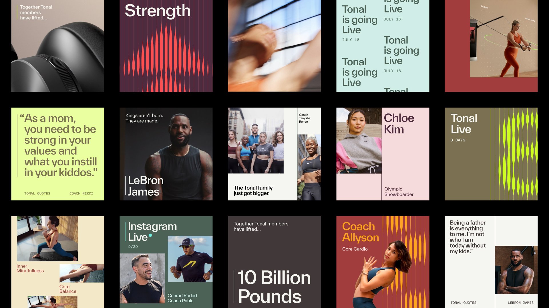 This identity system was designed to be flexible enough to span Marketing, Product, Internal Comms & more. Every channel is different, but in each format the combination and application of the elements ensure Tonal’s brand remains consistent in tone, look, and feel.